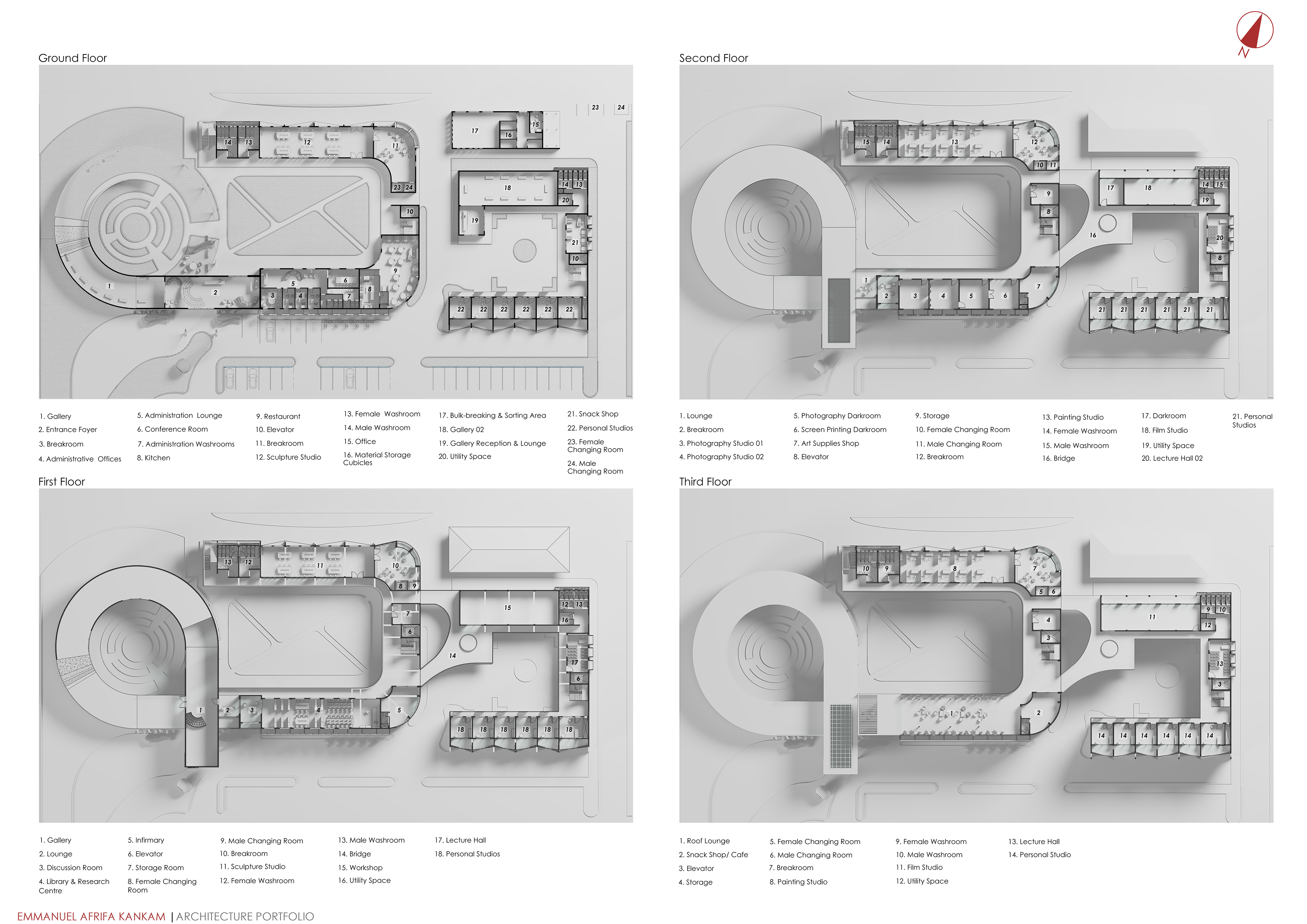 Ultimately, the complex proposes a campus place where craft is visible, learning is social, and making is not pushed to the margins. It is a building that respects how artists actually work: with tools, with bodies, with time—and with each other.