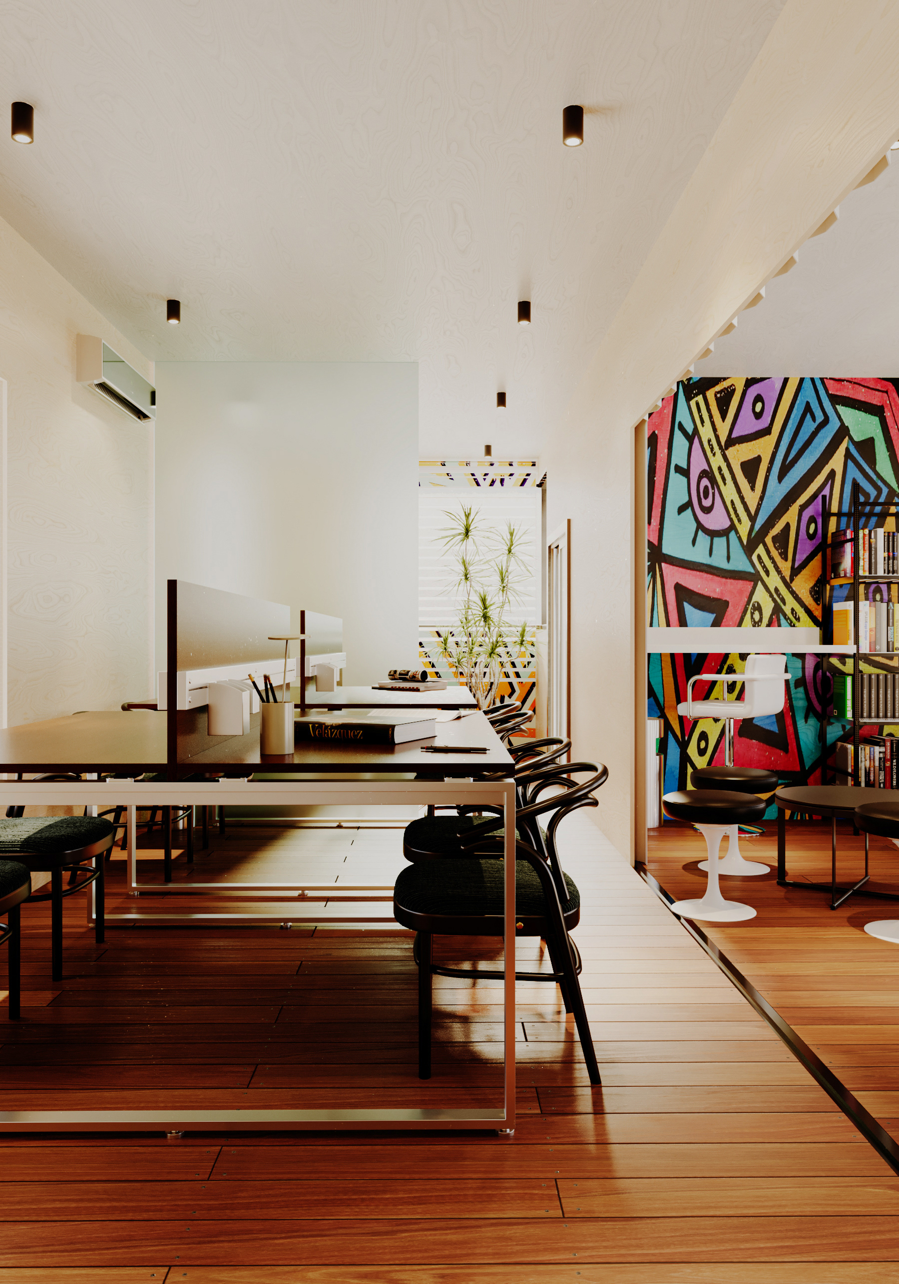 Daylight without glare: Openings are sized and positioned to bring in soft, readable daylight while limiting harsh glare—supporting concentration and visual comfort.
