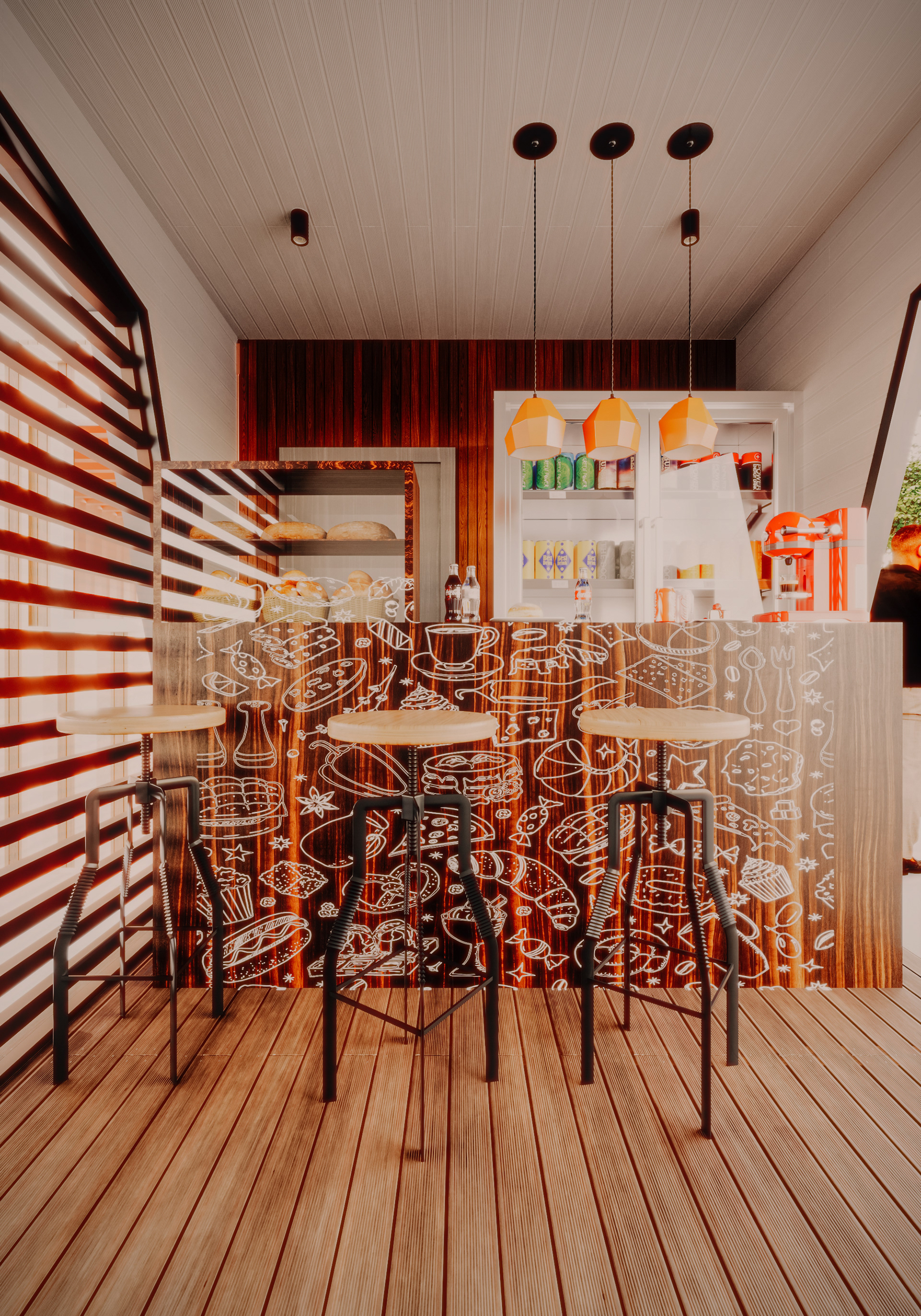 Passive comfort is embedded through straightforward logic: reduce direct solar exposure on the steel skin, allow cross-ventilation through controlled openings, and introduce a secondary shading layer—canopies/pergolas and planted edges—that softens the microclimate and turns arrival into a cooler, calmer experience. The design remains disciplined about maintenance and realism: simple additions, durable finishes, and an approach that can be adapted as resources change.
